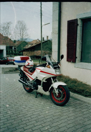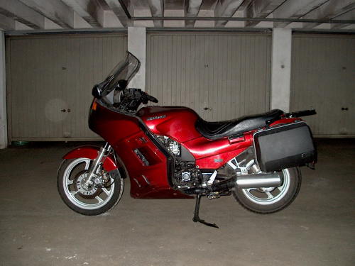 Kawasaki GTR 1000 de 1988. Une très bonne routière, sobre et confortable. Le cardan a fait la différence par rapport à la FJ. Aucun problème lors de ces 41’000 kms