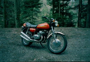 Kawasaki S1 de 1973. Un engin particulier, moteur 2 temps, un son hors du commun. Une 250 qui boit et qui fume ……